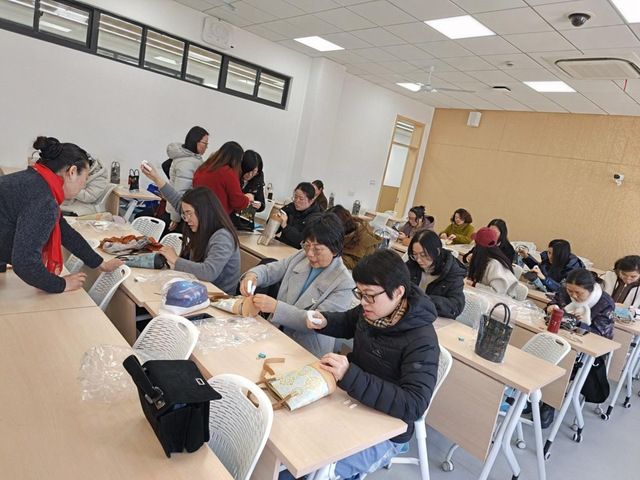 巧手传非遗 锦绣庆三八 ——十大买球官网开展非遗牛皮宋锦包手工...