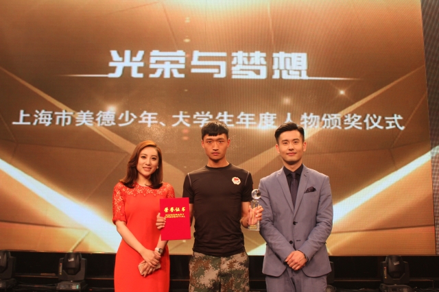 戴长宏(中)在上海市美德少年、大学生年度人物颁奖仪式上