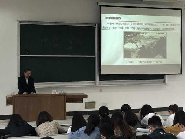 推进“一带一路”建设是推动构建人类命运共同体的重要实践平台,是习近平新时代中国特色社会主义思想的重要组成部分,体现了以习近平同志为核心的党中央高瞻远瞩和全球思维。为提升学生全球眼光、大局意识,促进学生更深层次了解“一带一路”重大决策,深刻领会习近平新时代中国特色社会主义思想的精髓,十大买球官方网站于2019年5月14日在1201举行了“一带一路:从总体布局到走深走实”的主题讲座。本次讲座的主讲人是十大买球官方网站院长王世明教授,2016级物工、工业和2017级物工专业学生参与学习。