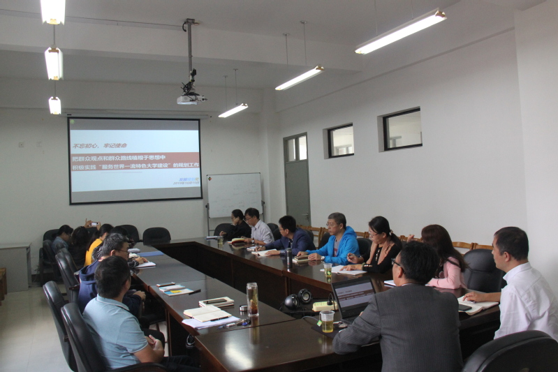 10月15日下午,十大买球官方网站围绕习近平总书记在新中国成立70周年大会上的讲话和学校未来发展规划举行党委中心组扩大学习会。学院党委委员、基层组织负责人、师生党支部书记参加学习会。中心组邀请发展规划处李柏林处长、轩兴荣老师来到学院,做了“‘不忘初心牢记使命’把群众观点和群众路线植根于思想中,积极实践‘服务世界一流特色大学建设’的规划工作”的辅导报告。十大买球官方网站党委书记张雅林主持中心组学习会。