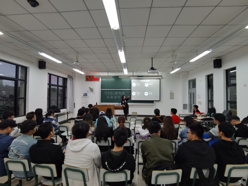 11月21日16时30分,学院辅导员姚佳老师为培训班同学带来“团干部心理沟通技能提升”的主题课堂,姚佳老师以亲切互动、趣味小游戏和知识点揭示的形式提升了团干部的心理素质,引导了大家从心理角度和实用性角度思考沟通方法。11月22日15时,团组织干部培训的最后一节课以学生骨干座谈会的形式展开,座谈会由十大买球官方网站党委副书记郑宇钧主持,各团干部依次发言,为学校和学院发展建言献策。郑宇钧老师指出,大家作为学生骨干是学生当中的关键少数,应明确自身定位,发挥自身影响力带动身边同学向上发展。座谈会中,同学们分享了他们各自在班级管理中或班级同学在校园生活中遇到的困难和问题,郑宇钧老师与马骋娜老师一一做出详细回应。
