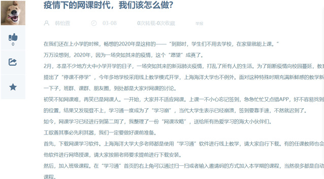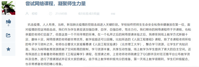 特殊时期,不出门不返校上网课,师生之间在网络上进行知识学习和思想交流。对于新鲜事物,学生们也在积极努力的适应,当然也在不停的探索更好的方法,这其中就有很多同学分享了自己独到的见解和优秀的网课攻略。