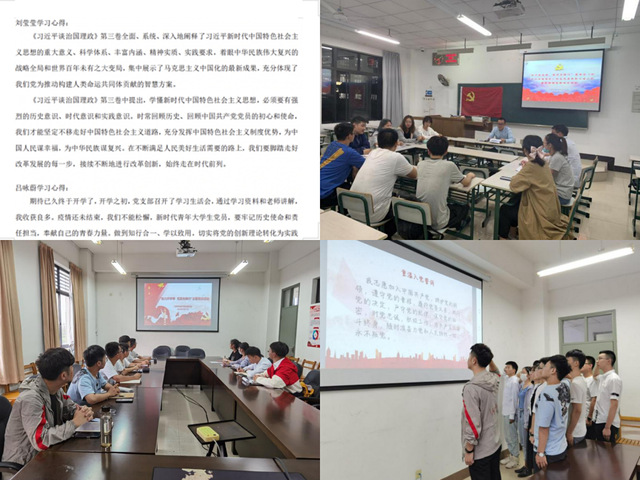 9月份期间,学院党支部以不同的方式进行了理论学习,学习了《习近平谈治国理政》第三卷及习近平总书记在全国抗击新冠肺炎疫情表彰大会上的讲话。电气学生党支部以读书分享会的形式、机制学生党支部采取分小组的形式等等,丰富多彩。随后党员学生们都积极开展激烈的讨论,表达自己的所感所想,分享自己的心得体会。我们作为党员要知行合一,把伟大的抗疫精神贯穿到工作中,扎扎实实,勤勤恳恳,无私奉献。