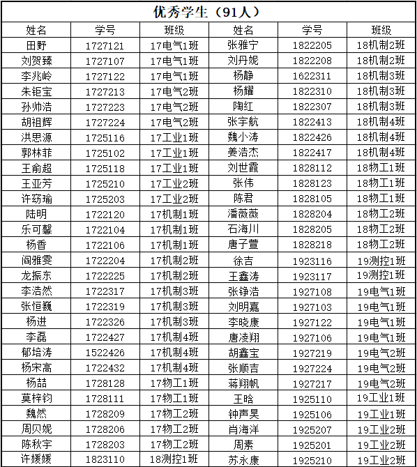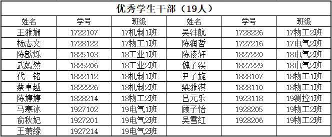 由院团委牵头,经过全院学生/班级(团支部)自愿申请、资格审查、公开答辩和评委评审,按照比例产生十大买球官方网站2019-2020学年优秀学生干部19人,优秀学生91人、优秀学生标兵28人、社会工作积极分子55人,评选出本科生先进班级2个,文明班级4个班级。