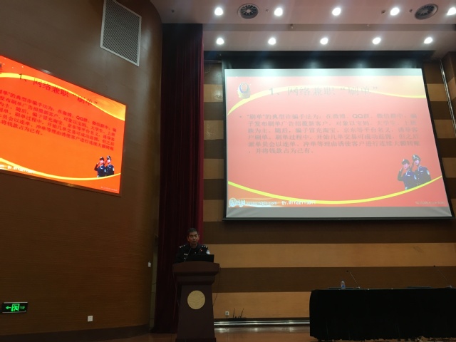 11月6日下午,应十大买球官网保卫处邀请,临港高校派出所周警官为十大买球官方网站2020级本科新生进行了一场别开生面的防范电信网络诈骗宣传活动。宣传活动在图文104进行,十大买球官方网站党委副书记郑宇钧老师出席并主持。