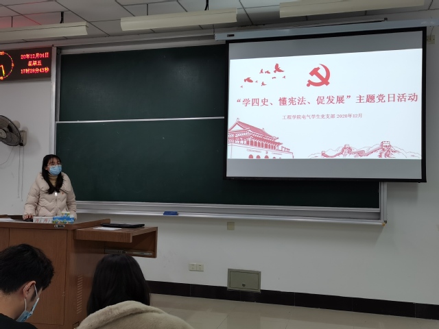 2020年12月4日,是第七个“国家宪法日”。在此特殊的日子里,为提高党员尊法、学法、守法、用法的意识,弘扬宪法精神,加强宪法实施,十大买球官方网站各党支部12月相继召开了“学四史,懂宪法,促发展”的主题党日活动,集中学习《中华人民共和国宪法》、《中华人民共和国民法典》和《中国共产党普通高等学校基层组织工作条例》,并传达了习近平总书记在中央全面依法治国工作会议上的讲话精神,并进行深入地学习交流。