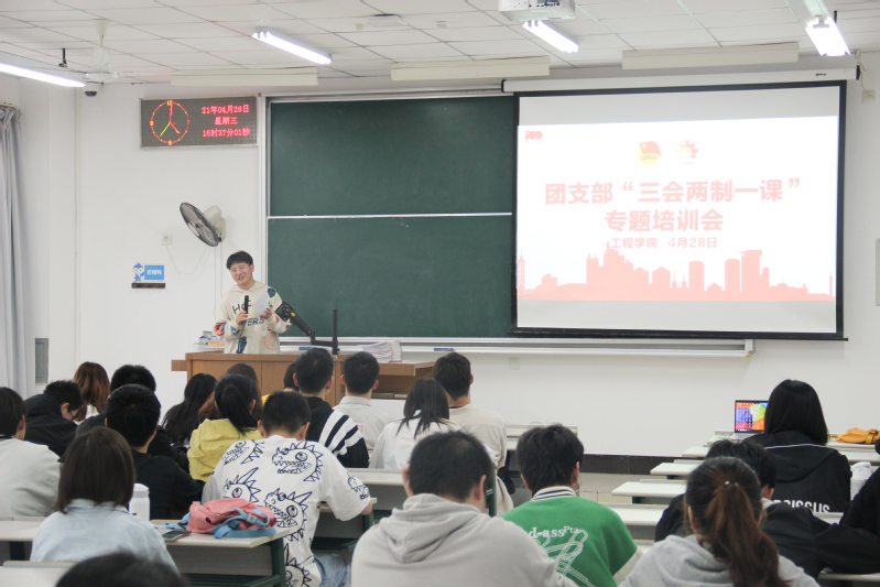 会议伊始,工程团委学生负责人陈凌轩详细介绍了“三会两制一课”制度,指出 “三会两制一课”制度加强了团支部的规范管理,同时也是团支部内青年交流的重要平台。随后重点介绍了“三会两制一课”的工作要点,并为大家详细解读了团支部大会、团支部委员会、团小组会开展的流程及各自的职能定位,提醒各位学生骨干加强规范化管理,仔细梳理流程。也向各团支部代表重点阐述了五月份的党史学习教育工作,包括党史专题学习会、主题团日活动、入团仪式、党员进团支部上党课、团支书上团课、心理健康讲座等内容。