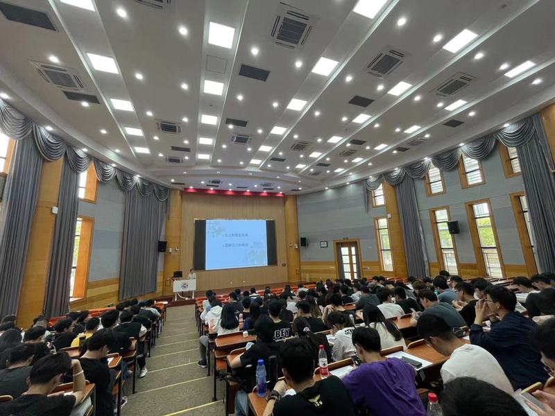 讲座伊始,秦医生通过在日常咨询与评估工作中的一则实例,开启了有关压力倦怠和情绪调节的话题。她指出,社会中的每一个人都存在着压力和倦怠,适度压力给予人们良好的警觉与行为表现,而过度压力则呈现为行为表现衰退、过度的应激反映等。随后,秦医生为同学们讲解了压力形成的原因——真实的或想象的威胁,由此梳理了压力产生的内部因素和外部机制。考试等学业指标、恋爱等人际关系、同伴竞争、自我加压等要素,都潜在地制造着压力,加之个人家庭史和不良应对技巧的影响,以及较为低下的社会支持水平、经济因素、应激性的生活事件,在多重因素的作用下,压力持续性存在。最后,秦医生提出可通过调节自身的一些行为感觉来有效地缓解压力,同时向同学们讲述了相关的方式和技巧。主要有:通过控制呼吸和进行一些放松的训练来调节身体感觉;以养成记日记的习惯来进行应激的自我意识训练;通过自信训练、时间管理、睡眠管理来处理存在的不良的行为;对于分散注意力,可以进行适当的体育锻炼,重新聚焦自己的生活;还可以通过改变认知,识别负性自动想法,挑战逻辑错误,进行合理的思维替换等来挑战忧虑性思维;在与人交往时,需要适当的表达自己的要求权力感受;通过为自己制定可行的计划以达成对时间的合理安排。