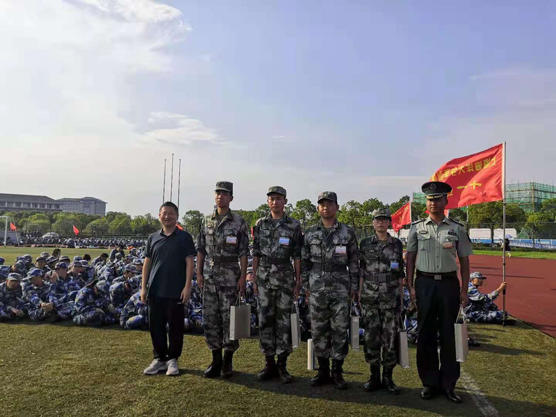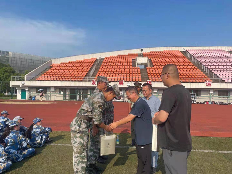 随后,郑宇钧老师向连队教官了解学生军训情况,同时送上学院纪念品,对刻苦训练的教官们表达了敬意和感谢。