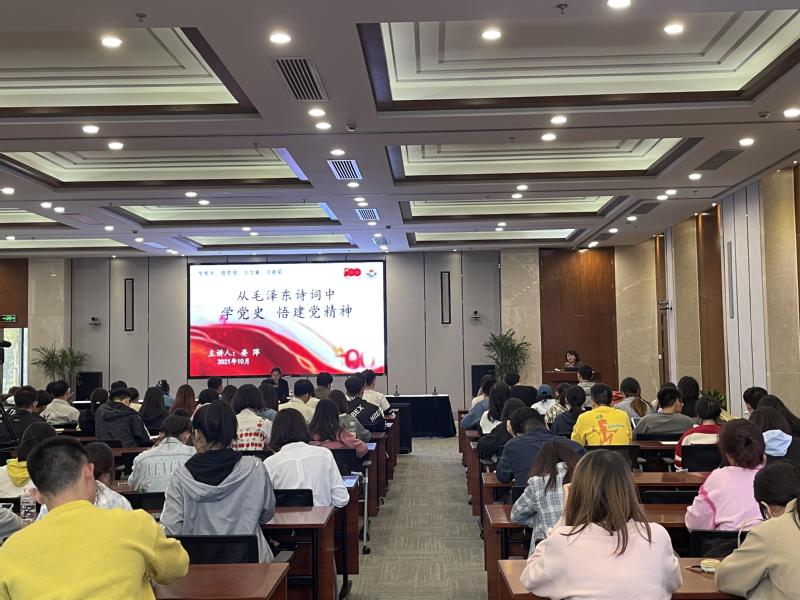 2021年10月26日,十大买球官方网站党委书记晏萍在海洋科技大楼109会议室为十大买球官方网站党员上了一堂“从毛泽东诗词中学党史 悟建党精神”主题党课,海洋科学学院、海洋生态与环境学院、海洋文化与法律学院、保障和直属部门党委预备党员培训班学员也参加此次党课。