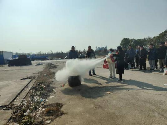 消防安全演练包括消防安全知识科普,干粉灭火器使用教学等环节,采取理论授课与现场演练相结合的方式,让每一位同学正确掌握了灭火器的使用方法。为进一步巩固实践效果,陆育东老师在现场演示干粉灭火器使用的操作程序后,让大家亲身体会使用干粉灭火器灭火的感受,使所有参训人员都能正确掌握灭火器的操作方法。在面对真正的火堆时,同学们并无慌张,沉着冷静的按照老师所讲述的步骤,提起灭火器,拔掉保险销,一手握住压把一手握住喷管,站在火苗上风对于火苗根部进行交叉喷射,成功将火堆吹灭。