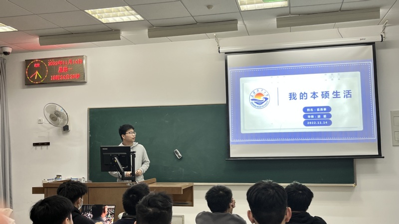 科创巡讲邀请了优秀研究生袁鑫泰;“挑战杯”上海市一等奖、国家三等奖获得者魏仁杰、苑晓聪;优秀“科创达人”王鑫涛、卢祥、方书颖和陈菲洋。几位优秀的学长学姐主要围绕自己的大学期间的科创经历分享自己的科创经验,同时分享了自己的学习和科研的一些心得体会,袁鑫泰同学讲到自己是从大一上学期开始做大学生科技创新,自己主动联系自己的学业导师,听取了学业导师的建议后,大二在学业导师的帮助下完成了实物的制作,并开始参加比赛完善自己的作品,大三开始申请发明专利,总结这三年的实验经验,最后鼓励2022级新生要以更加饱满的热情投入到将来大学学习和科创中,希望同学们珍惜大好时光,努力在大学里学习专业知识,增强专业技能。