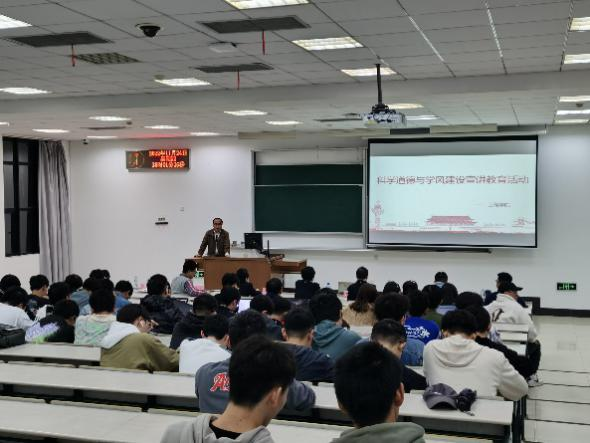 首先胡庆松院长就科研诚信方面,结合以往其他高校实际案例向同学们做出警示,以此提醒大家“科研诚信、警钟长鸣”,并倡导大家“洁身自爱、勇攀高峰”。