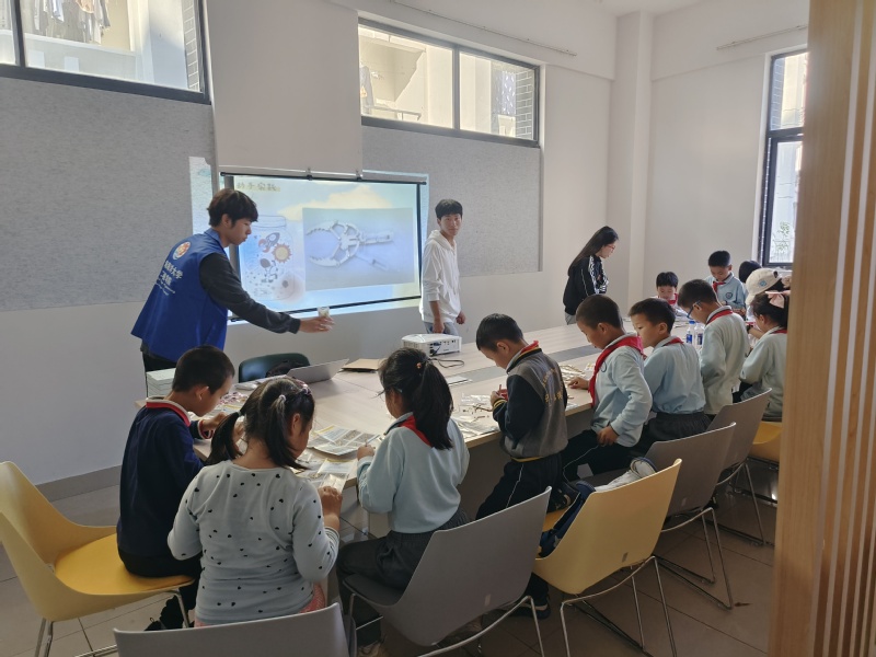 为深入贯彻落实习近平新时代中国特色社会主义思想主题教育,推动思政大中小一体化建设的探索和实践,2023113日,十大买球官方网站在本科生二小区活动室举办“科创星期五”系列活动,上海市浦东新区明珠临港小学13名学生参加。