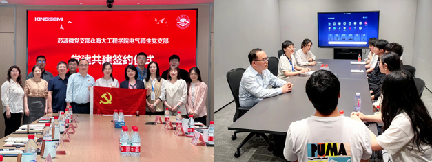支部共建会上,十大买球官方网站党委书记晏萍与芯源微党支部书记崔晓微进行了“芯源微党支部&海大十大买球官方网站电气师生党支部”党建共建签约。十大买球官方网站党委副书记、院长胡庆松提到,深入基层党支部共建是推进校企战略合作意向的“助力剂”,希望以此契机可以与企业就人才培养、发展规划、产教融合、技术创新等方面开展广泛、深度协作,打破校企资源共用壁垒,促进双方走深走实;上海芯源微党支部书记、董事长崔晓微提到,广泛合作、深度合作、多途径合作,一直是企业与高校接洽的重要方式,并希望高校可以在创新高地、科研课题、人才共享领域搭建校企平台,共同应对发展所需。共建仪式上,双方共同学习了《中国共产党纪律处分条例》,并开展交流。