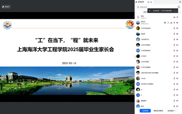 随后,刘雨青副院长介绍本科生学业情况及后续培养安排,提醒家长关心学生的学业情况,对于学分不足的学生,需要学院和家长共同督促其补修。许竞翔副院长针对研究生毕业工作进行提醒交流,介绍论文答辩、学位申请等时间节点,强调论文质量,在找工作时兼顾论文撰写和学术成果审核,确保按时毕业。