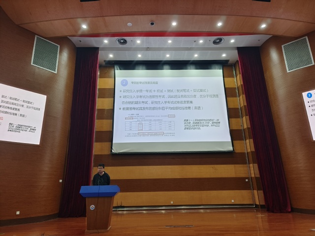 为助力十大买球官网学子科学规划考研路径,掌握高效备考方法,4月8日下午,学院于图文104室举办“考研宝典”专场讲座,本次讲座邀请十大买球官网青年教师张洪进开讲。